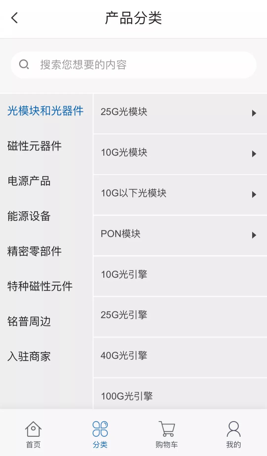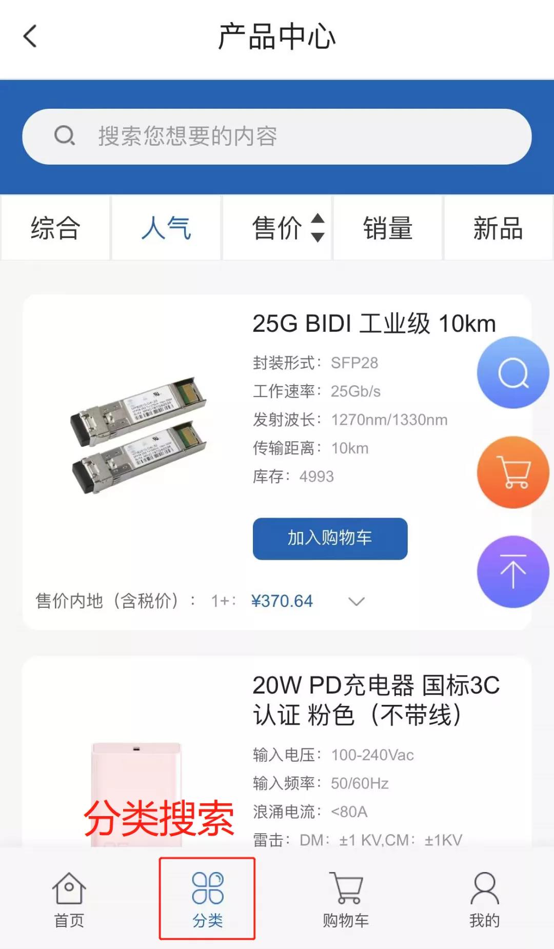 产品中心支持产品关键词和类目搜索