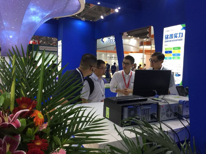 铭普光磁展位现场人头涌动,热闹非凡,现场的工作人员们正在为每一位客户细心地讲解设备的功能特点以及技术亮点。