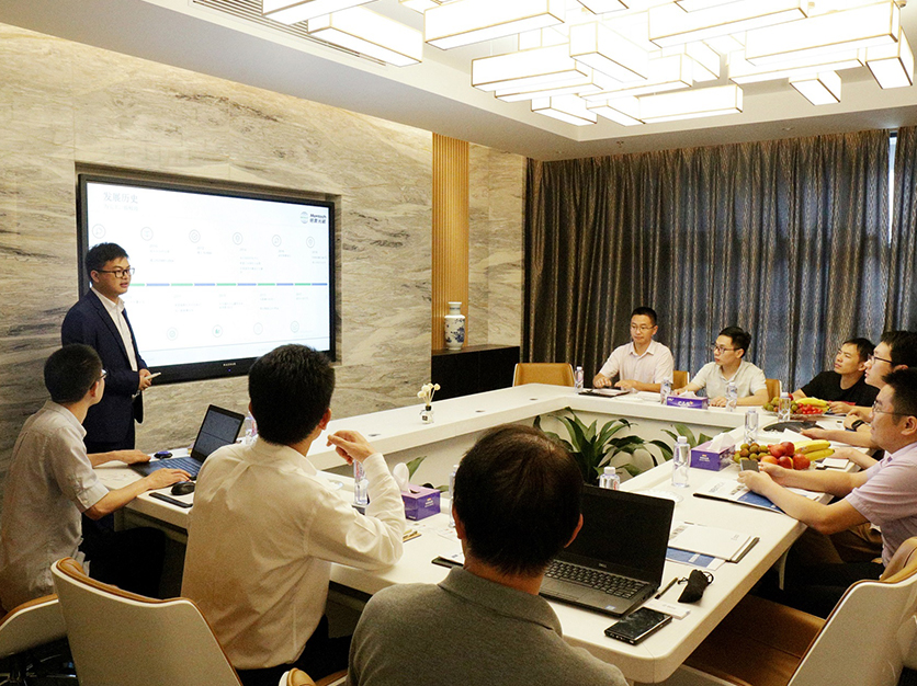 会议初始,铭普光磁销售朱经理先对大家进行了公司整体介绍。紧接着,铭普光磁市场部陈总监简单介绍了我司25G CWDM 6波产品及前传方案,随后双方就光传输技术、产业链合作、光收发模块等方面进行了相关讨论。