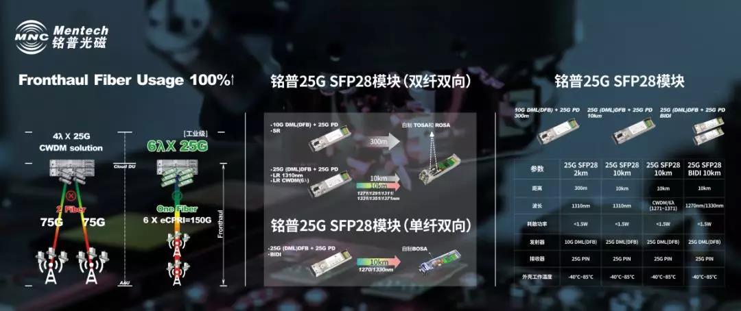 其中包括我们重点希望向您推荐的:真正工业级25GSFP28 CWDM(6波)模块,以及完整的无源波分产品解决方案。