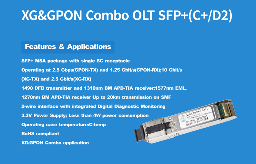我们很荣幸的向您推荐我们全新研发并已批量生产交付的高功率Combo OLT SFP+(C+(D2))产品。