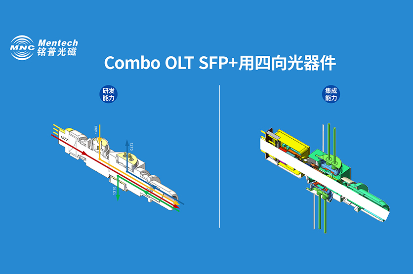 而这款C+(D2)级别的高功率Combo OLT SFP+模块的核心技术,则在于其内部独有的高功率四向器件,如下图: