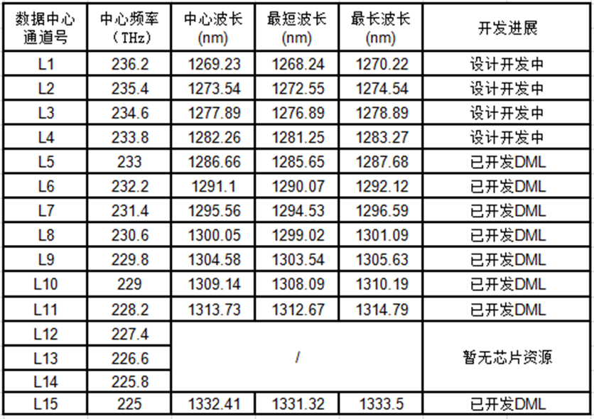 25G 制冷型LANWDM模块波长通道