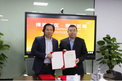 致词结束后,由电研院梁勇副院长与铭普光磁杨先进董事长签订合作协议,并将电子科技大学博士后创新实践基地建设确认函提交给铭普光磁杨先进董事长,作为双方共建博士后创新实践基地、开展博士后人才引进合作事业的里程碑。