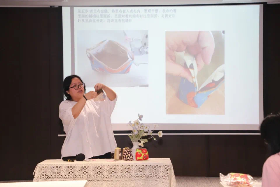 在资深手作老师的指导下,大家一针一线地缝制,每一个细节都倾注了对母亲的深情厚意。