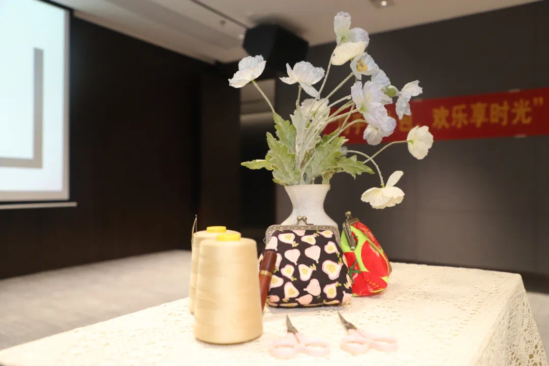 活动当天,现场气氛热烈而温馨。老师根据纸板裁剪表布、里布、铺棉和布衬,并熨烫里布、表布供现场职工使用,大家齐聚一堂,亲手挑选心仪的复古口金包材料包,迫不及待地开始了手作之旅。